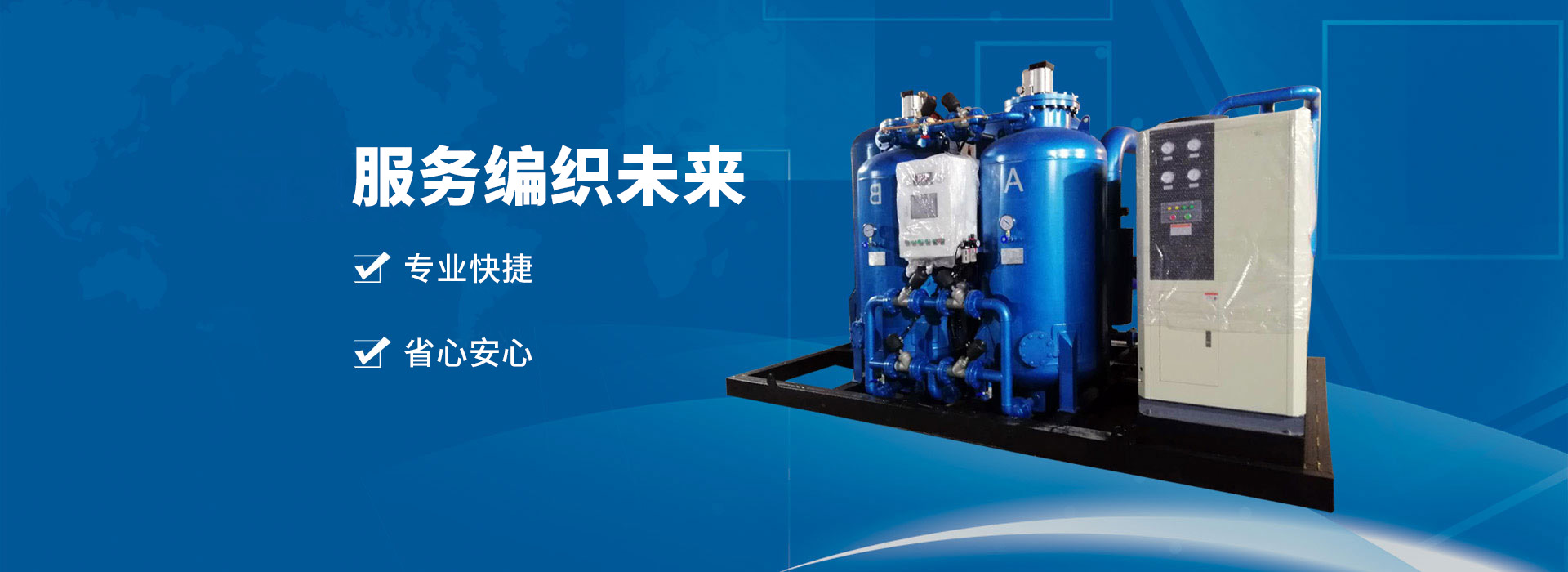 我們以氣體和液體的凈化、分離、提純作為核心業務,是氮氣、氧氣的現場制氣設備提供商以及氫氣、天然氣、二氧化碳、中間體、有機溶劑、壓縮空氣、化工尾氣的深度凈化設備供應商。 核心產品線有:變壓吸附制氮制氧設備,氮氣純化裝置,天然氣脫硫脫碳脫水脫烴脫汞設備,輕烴回收裝置,中間體有機溶劑脫水設備(液體脫水設備),二氧化碳脫水設備,壓縮空氣、化工尾氣等深度干燥凈化裝置等。